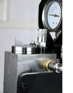 測(cè)試砧座經(jīng)熱處理,硬度達(dá)到HRC58-62之間,后經(jīng)磨削加工,耐磨度強(qiáng)度平面度得到保證 壓力表特殊定制,比同類產(chǎn)品小巧,不易造成誤碰撞。 |